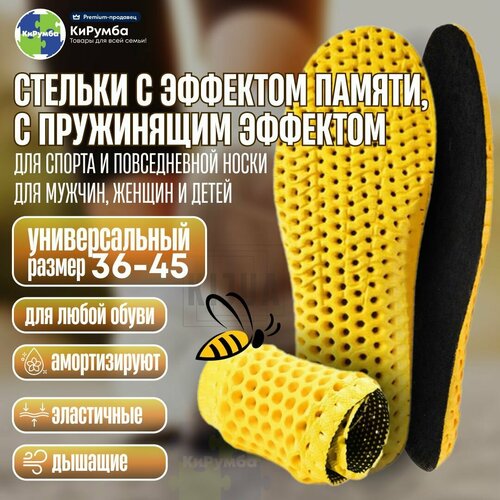 Стельки для обуви, эластичные, с пружинящим эффектом, с эффектом памяти, дезодорирующие, универсальный размер 36-45