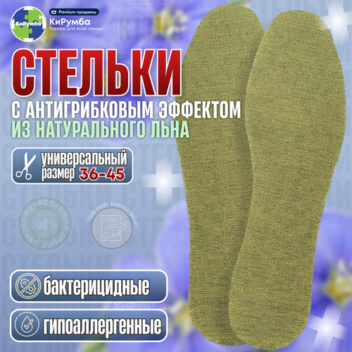 Стельки бактерицидные из натурального льна с антигрибковым действием, универсальный размер, 36-45