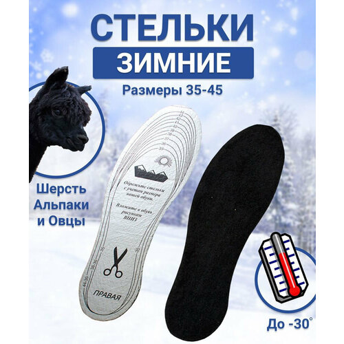 Стельки для обуви, зимние, теплые, из шерсти альпака, фольгированные, термостельки, универсальный размер 35-44