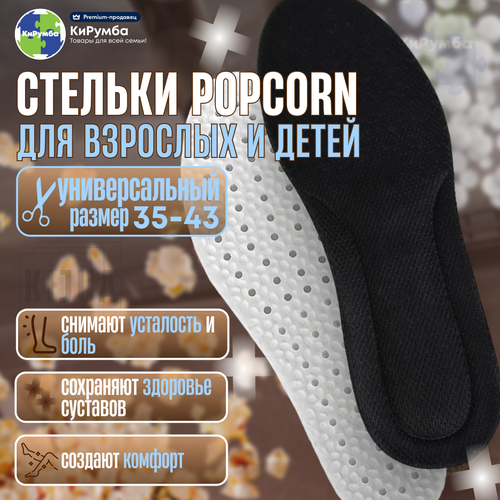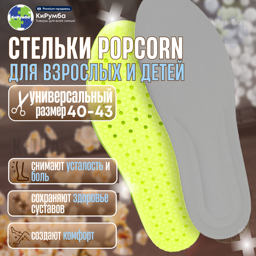 Стельки Popcorn для спортивной и повседневной обуви, анатомические, мягкие, амортизирующие, универсальный размер 35-43