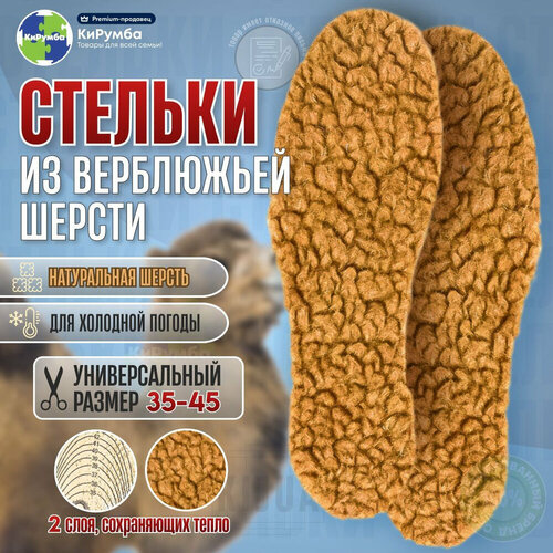 Стельки для обуви, теплые, зимние, из верблюжьей шерсти, трехслойные, термостельки, универсальный размер 35-44