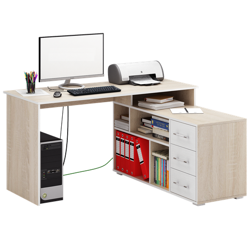 MFMaster компьютерный стол Краст-2, ШхГхВ: 140х120х75 см, цвет: дуб сонома/белый