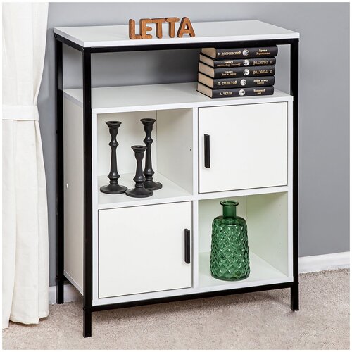 Шкаф комод Frame ЛДСП Белое тиснен, Черный металл 700х910х300