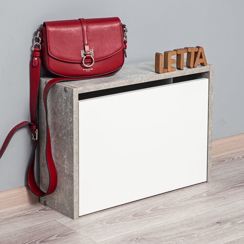 Обувница в прихожую узкая закрытая полка для обуви Ultra 1 секция Ателье светлое/Белое тиснение 532х374х170