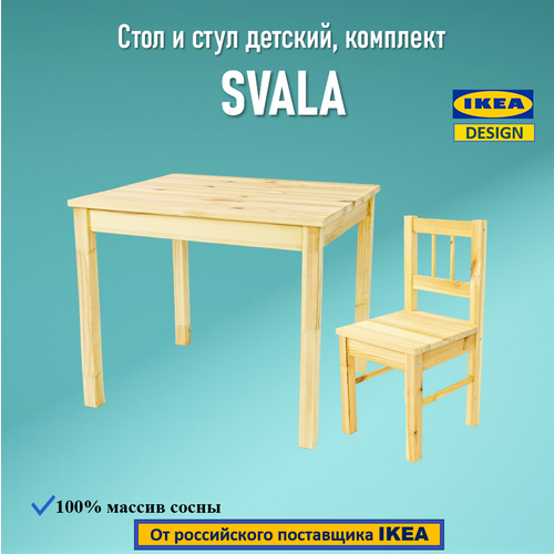 Стол и стул детский SVALA/свала, комплект, массив сосны
