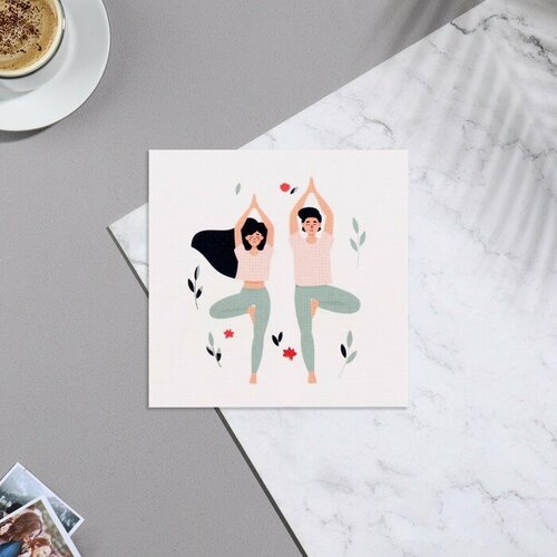Мини-открытка "Универсальная" йога, серый фон, 7х7 см 9743562
