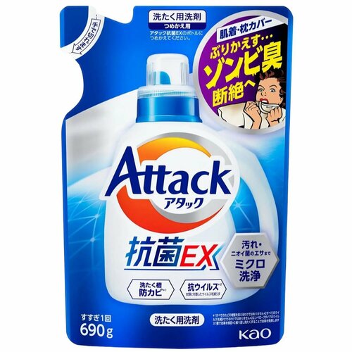KAO Attack Жидкое средство для стирки белья с антибактериальным эффектом сменная упаковка 690 гр