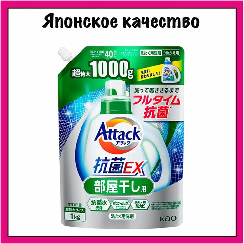 КАО Attack ЕХ Высокоэффективный гель для стирки белья с антибактериальным эффектом, с ароматом зелени 1000 мл
