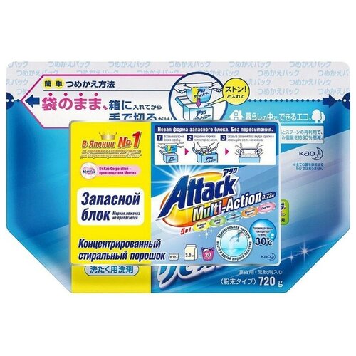 Стиральный порошок Attack Multi-Action, с кислородным пятновыводителем, 720 г.