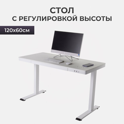 Стол с электрорегулировкой и памятью LuxAlto, столешница МДФ Молочный дуб 120x60x6 см, белое подстолье E4A