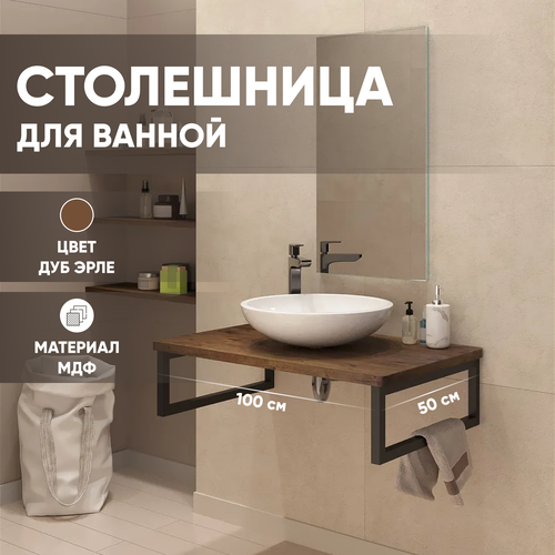 Столешница Leman Дуб эрле 1000х500х28 мм влагостойкая из МДФ для ванной под раковину и стиральную машину