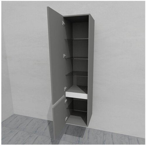 Шкаф-пенал для ванной подвесной глубина 35 см, левый, влагостойкий, цвет светло-серый, матовая эмаль + лак, серия Сдпрестиж