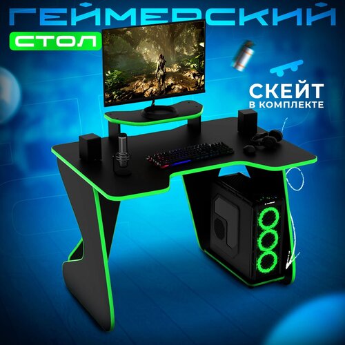 Геймерский игровой компьютерный письменный стол легион черный/зеленый