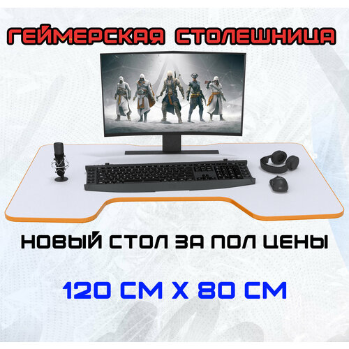 Столешница для геймерского стола Вектор лайт белый/оранжевый