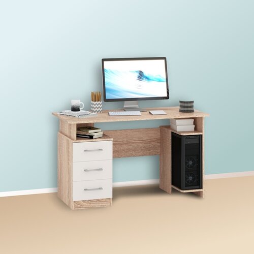 Стол компьютерный письменный с ящиками рабочий офисный для школьника Гарвард 130 дуб сонома белый