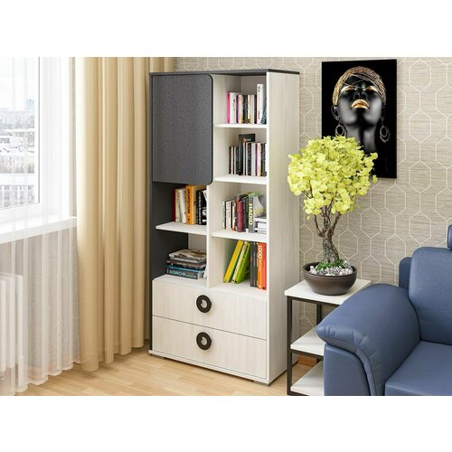Полка книжная КН-01, цвет венге/дуб, ШхГхВ 83х25х30 см, стеклянные дверцы (ДВА цвета венге и дуб)