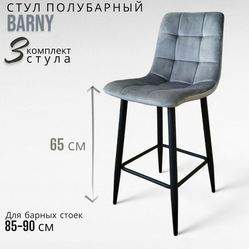 Стул полубарный 3 шт Терминал BARNY NEW велюр темно-серый dark grey 12