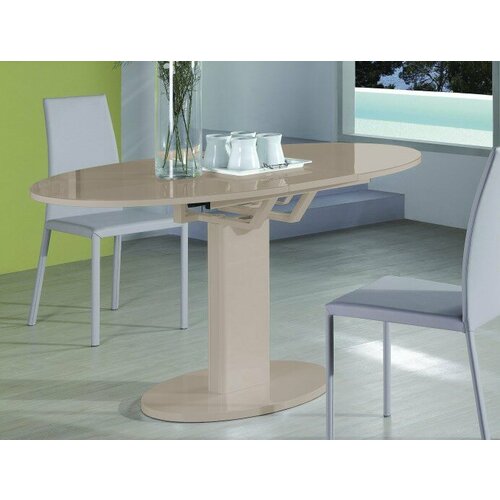 Стол выполнен из ламинированного МДФ в цветах «орех», «темный орех», «белый дуб» или «венге», устойчивых к появлению царапин и отпечатков. Средние ножки — из стали, окрашены эмалью в общий цвет стола и в сложенном виде скрыты между основными большими ножками. Преимуществом этом модели является возможность хранения панелей-вставок внутри стола — на вращающейся металлической средней подставке. Их можно устанавливать в любом количестве, и стол может иметь любой из 5 размеров. Основные ноги имеют внизу пластиковые накладки, а средние ножки — ролики, что облегчает перемещение и раскладывание стола. При раскладке стола среднюю металлическую ножку можно повернуть на 90 градусов, и она будет полностью скрыта под столом, не мешая тем, кто сидит в центре. Кроме этого, такое положение ножки придает столу дополнительную устойчив