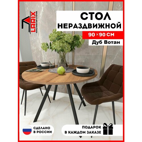 Стол нераздвижной кухонный Ларго Дуб Вотан, стол обеденный 90Х90 см, стол для кухни и дома