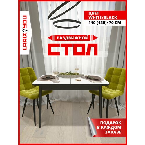 Стол раздвижной кухонный Стоун Белый матовый, стол обеденный 110/140Х70Х75 см