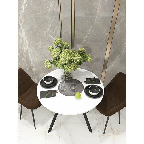 Стол кухонный круглый раздвижной Веста 2 Белый Мрамор Муар Черный , 90х90см