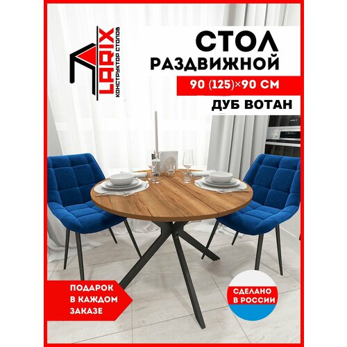 черный, серыйСтол обеденный раздвижной LARIX - сердце обеденной зоны. Стол круглый Боско. Размер 90х90см. Столешница трансформер, которая при раскладывании увеличивается до 125х90см. Стильный раскладной стол для кухни - обязательный предмет мебели для гостиной или столовой, который станет центром притяжения для всей семьи. Столешница выполнена из ЛДСП 22 мм, покрытие верхнего полотна высококачественный пластик. Все детали мебели обработаны кромкой, она надежно защищает края от ударов и механических воздействий. Телескопические направляющие полного раздвижения обеспечивают удобный и лёгкий доступ к вкладки для расширения. Характерные для модных интерьеров оригинальные ножки - опоры из метала 1.17 мм контрастного цвета придадут изюминку интерьеру. Особенность дизайна – это сочетание реалистичных по цвету и тактильности трендовых декоров, которые соответствуют последним городским тенденциям.