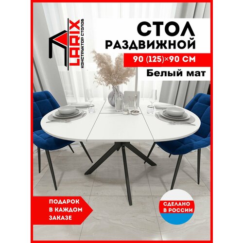Стол раздвижной кухонный Спайдер Белый матовый, стол кухонный раскладной 90/125Х90Х75 см