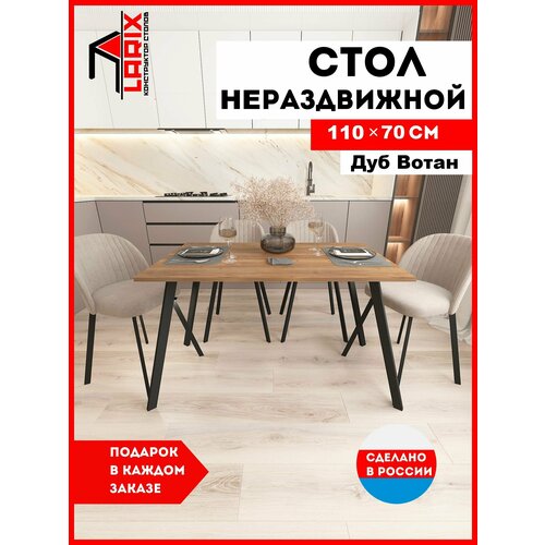 Стол обеденный нераскладной стефи Дуб Вотан, стол кухонный 110х68х75 см