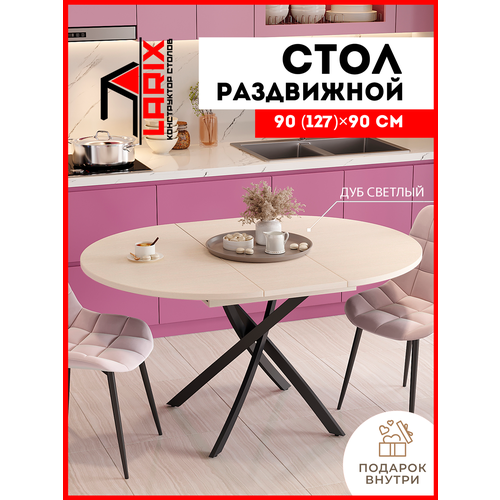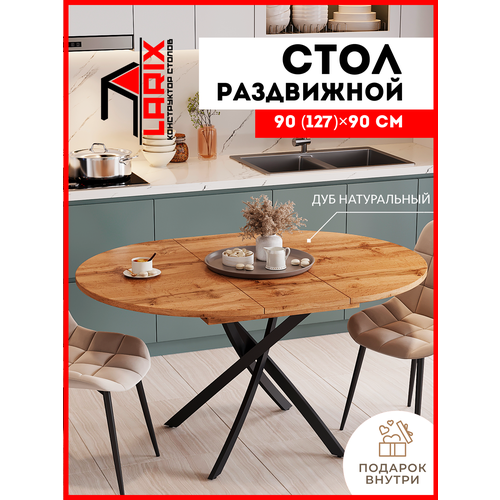 Стол кухонный раздвижной круглый 90х75х90, дуб натуральный