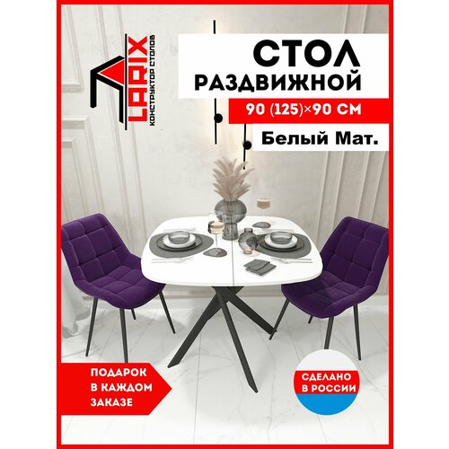 Стол раздвижной кухонный Ларго Белый матовый, стол обеденный 90/125Х90Х75 см
