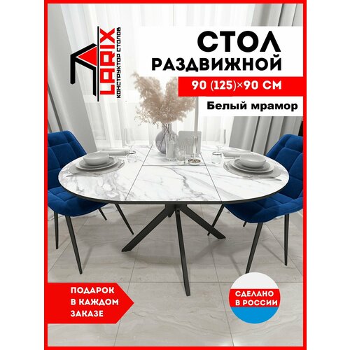 Стол раздвижной кухонный Спайдер Белый мрамор, стол кухонный раскладной 90/125Х90Х75 см
