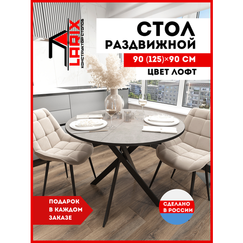 Стол кухонный раздвижной круглый Лофт , 90х90см