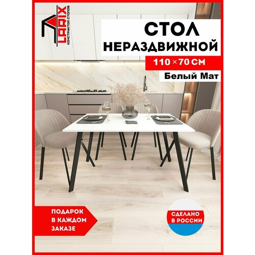 Стол обеденный нераздвижной стефи Белый матовый, стол кухонный 110х68х75 см
