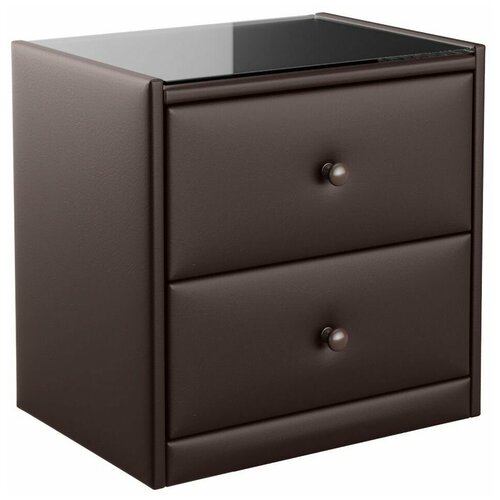 Тумба прикроватная Куба, КЗ Коричневый, спальное, с ящиками, обивка, стекло