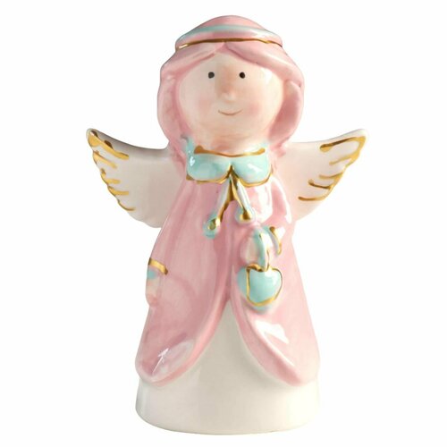 Фигурка декоративная Девочка-ангел в розовой накидке, с сердечком, 11.2х7.8х5 см, керамика