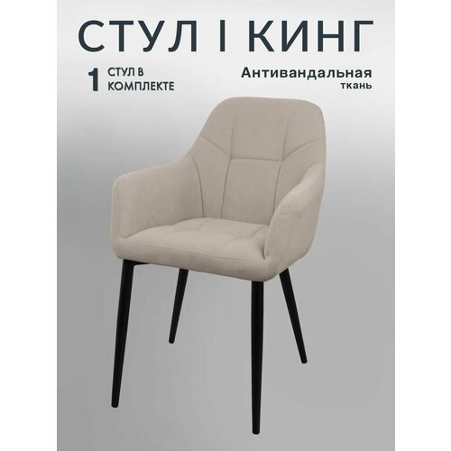 Стул кресло для кухни Кинг мягкий со спинкой в Бежевом цвете с черными ножками от LUSSOR
