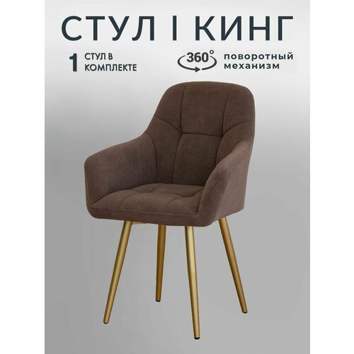 Стул кресло для кухни Кинг мягкий со спинкой поворотный в цвете Шоколад с золотыми ножками от LUSSOR
