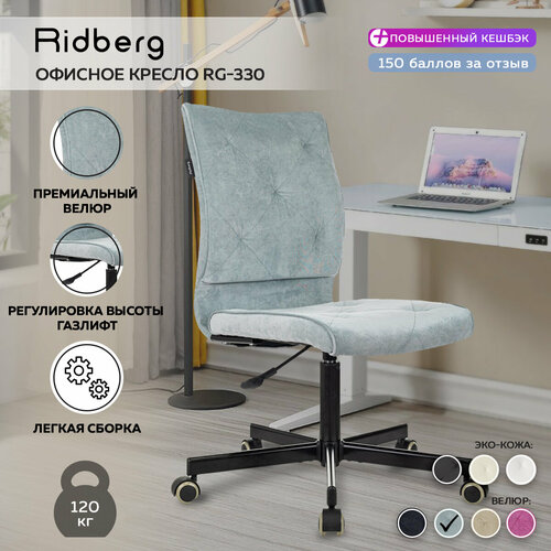 Кресло компьютерное офисное Ridberg RG 330 V, серо-голубой, велюр. Офисное кресло на колесах