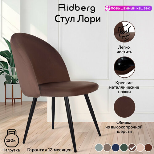 Стул для кухни Ridberg лори (велюр, коричневый, 1 шт.), столовой, гостиной, офисный, кухонный, со спинкой, на ножках, мягкий