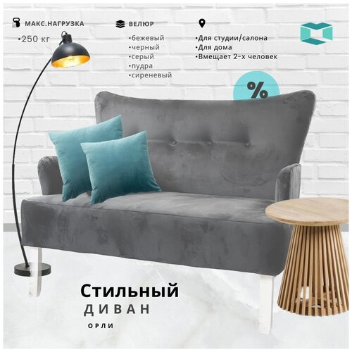 Диван Орли, Серый, Велюр, в салон красоты, студию, гостинную
