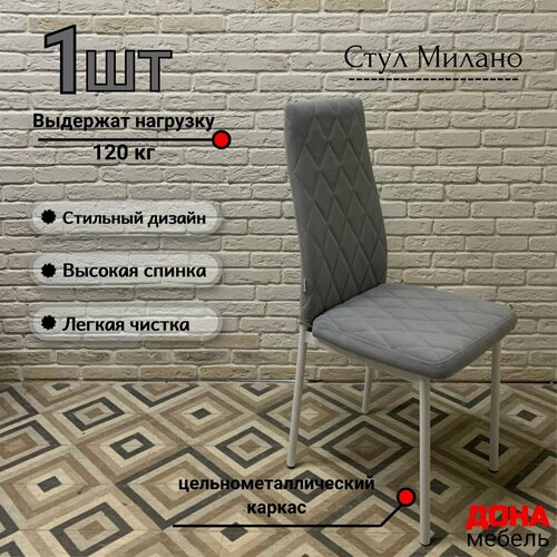 Стул Милано для дома и кухни, прошивка в ромб для кухни и дома, Квест 12, светло-серый, опоры белые, 1шт