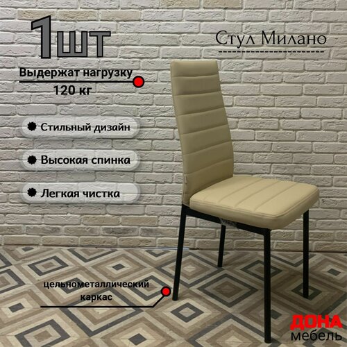 Стул, Комплект стульев Милано для кухни и дома, мягкий, прошивка горизонт, бежевая экокожа, опоры черные, 2шт