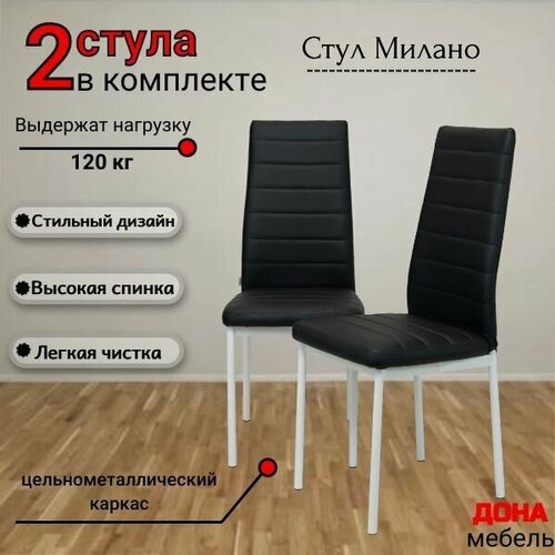 Цены на Стул, Комплект стульев Милано для кухни и дома, мягкий, прошивка ромб, черная экокожа, опоры белые, 2шт черный, белый в г. Москва