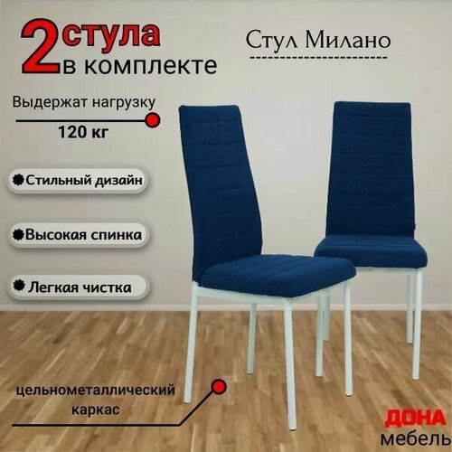 Стул, Комплект стульев Милано горизонт для кухни и дома, мягкий, антивандальный велюр, синий, опоры белые, 2шт