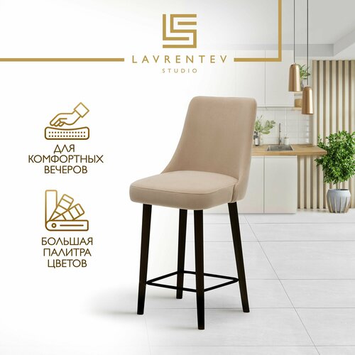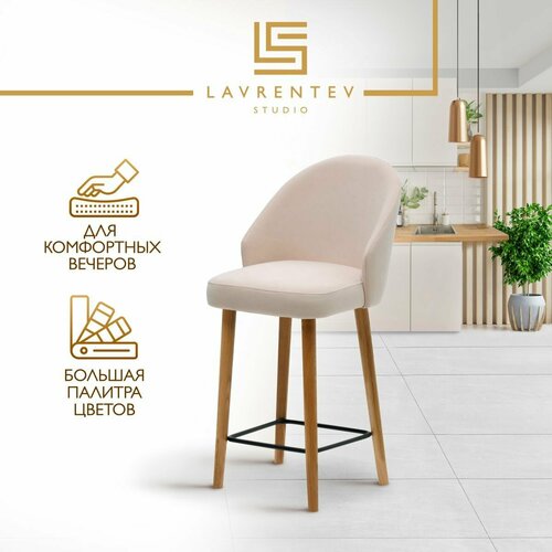 Cтул полубарный 60 см Fusion mini 1, на черных дубовых ножках, велюр цвет бежевый, Лаврентьев Студио