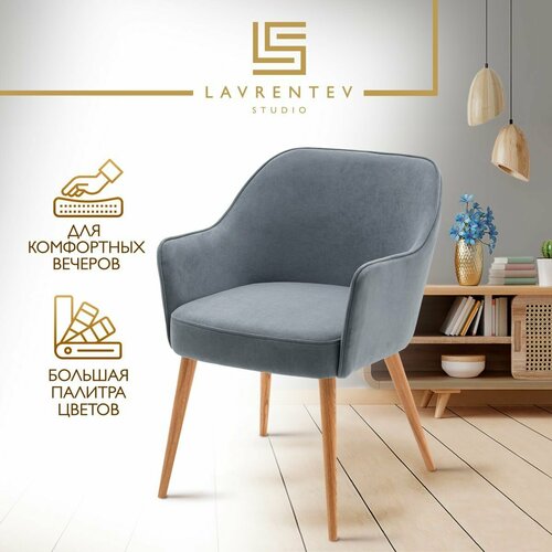 Стул кресло для кухни Лофт 1, мягкий стул с подлокотниками на деревянных ножках, велюр, цвет серый