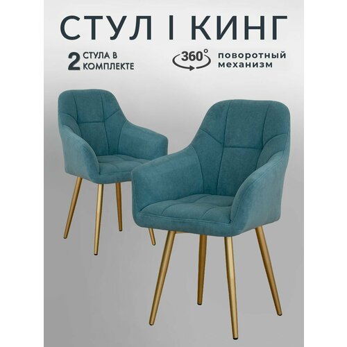 Стулья кресла для кухни Кинг мягкие со спинкой поворотные в цвете Минт с золотыми ножками от LUSSOR