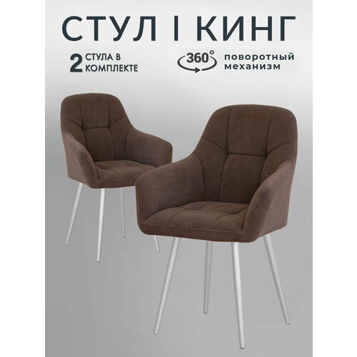 Стулья кресла для кухни Кинг мягкие со спинкой поворотные в цвете Шоколад с белыми ножками от LUSSOR