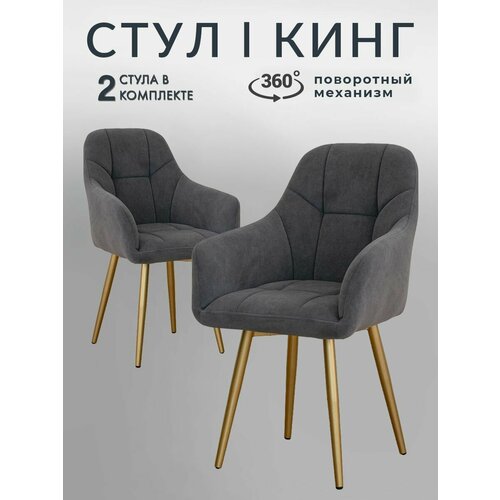 Стулья кресла для кухни Кинг мягкие со спинкой поворотные в цвете Графит с золотыми ножками от LUSSOR