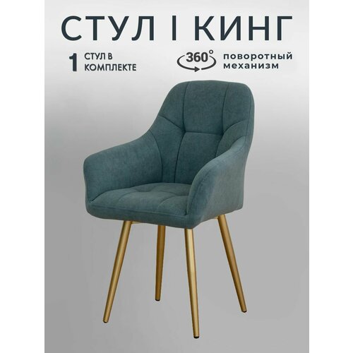 Стул кресло для кухни Кинг мягкий со спинкой поворотный в Зеленом цвете с золотыми ножками от LUSSOR